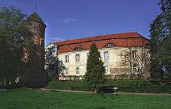 The Battle of Świdwin took place south of the town during 6–7 March 1945, in which a German SS corps was encircled and destroyed by two Soviet and one Polish armies.[1] After the town was captured, a Soviet general was killed by a member of the Hitler Youth. The reprisals that followed saw the men shot, and the women and girls raped by Soviet troops.[2][3] At the end of World War II Schivelbein with Farther Pomerania became part of the Republic of Poland and its name changed to Świbowina, which was officially renamed to Świdwin in 1946.