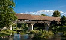 Where Aarberg now stands was once an island surrounded by the Aare and the Little Aare. By 1138 there was a small pilgrim home and hospital with a bridge, the Bargenbrügg, over the Aare. This bridge was a key river crossing from Bern to Büren an der Aare.[3]
