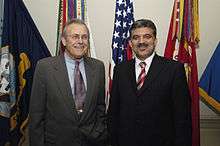 After becoming foreign minister in March 2003, Gül became the key player in Turkey's attempts to receive an accession date for the European Union and in its attempts to improve relations with Syria and maintaining its relationship with the Turkic-speaking countries of Central Asia and the Caucasus. On 8 January 2008, Gül flew to the United States to meet with U.S. President George W. Bush and U.S. Secretary of State Condoleezza Rice.[23]