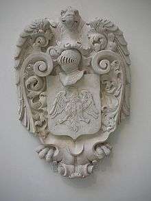 Stemma (Italian: coat-of-arms) of the Alidosi family from former Palazzo Alidosi at Cesena in Italy. Istrian stone, Medieval and Renaissance Gallery, Victoria & Albert Museum, London .