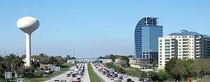 Skyline of Altamonte Springs viewed from I-4, with the unfinished Majesty Building (often called "the Eyesore on I-4") in the background. | |