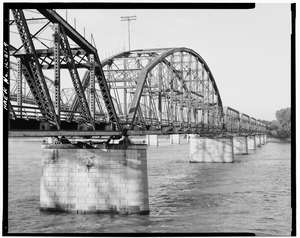 The Alton Bridge was a railroad bridge that carried the Chicago, Burlington, and Quincy (later Burlington Northern) across the Mississippi River between West Alton, Missouri, and Alton, Illinois. It was located 100 yards (91 m) upriver from, and parallel to, the Old Clark Bridge. The bridge was built between 1892 and 1894 and was removed shortly after the line was abandoned in 1988. With a total length of 2,060 feet (630 m), it consisted of eight through-truss segments—six Pratt trusses, one Pennsylvania truss, and one pivot-swinging truss.