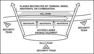 - L-shaped, when a short leg of firing units are placed to enfilade (fire the length of) the sides of the linear kill zone.