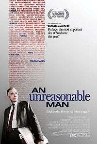 An Unreasonable Man is a 2006 documentary film that traces the life and career of political activist Ralph Nader, the founder of modern consumer protection in America and perennial presidential candidate. The film was created to defend Nader and restore his reputation after his controversial role in the 2000 U.S. presidential election