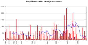 Flower was born in Cape Town, South Africa, and starting from his high school days at Oriel Boys' High School and Vainona High School played most of his career alongside his younger brother Grant Flower. He is considered to be one of the best wicket-keeper batsmen, alongside players such as Australian Adam Gilchrist.[1] Flower made his international debut in a One Day International against Sri Lanka at New Plymouth, New Zealand, in the 1992 Cricket World Cup. He was Zimbabwe's wicket-keeper for more than 10 years and statistically by far the finest batsman the country has fielded. A good player of spin, he made 550 runs in a Test series against India in 2000/01. This tally came in just four innings and he was only dismissed twice. He is one of the few players to score a century on ODI debut.