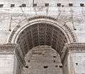 The three archways rest on piers, in front of which are detached composite columns on pedestals. Winged Victories are carved in relief in the spandrels. A staircase in the south pier leads to the top of the monument, on which were statues of the emperor and his two sons in a four-horse chariot (quadriga), accompanied by soldiers.