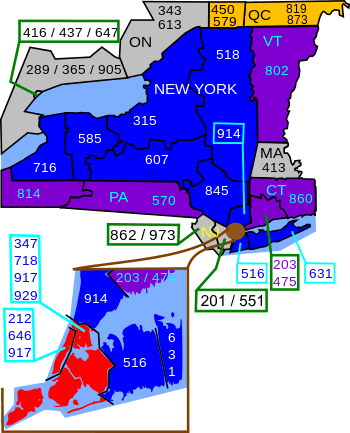| New York area codes: 212, 315, 332, 347, 516, 518, 585, 607, 631, 646, 680, 716, 718, 845, 914, 917, 929, 934 | ||