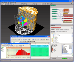 Avizo is a software application which enables users to perform interactive visualization and computation on 3D data sets. The Avizo interface is modelled on the visual programming. Users manipulate data and module components, organized in an interactive graph representation (called Pool), or in a Tree view. Data and modules can be interactively connected together, and controlled with several parameters, creating a visual processing network whose output is displayed in a 3D viewer.
