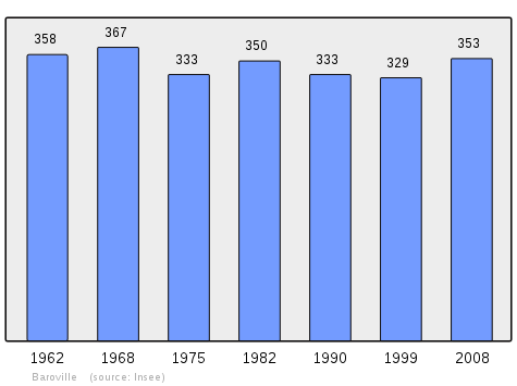 In 2010 the commune had 342 inhabitants. The evolution of the number of inhabitants is known from the population censuses conducted in the commune since 1793. From the 21st century, a census of communes with fewer than 10,000 inhabitants is held every five years, unlike larger communes that have a sample survey every year.[Note 1]