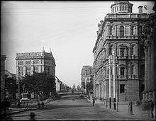 Bridge Street is a street in the CBD of Sydney, Australia. It runs east-west between George Street and Macquarie Street. It is in the local government area of the City of Sydney and the postcode is 2000. The street is 500 metres long.[1] It derived its name from a small bridge that used to cross the Tank Stream in the early days of the colony.[2]