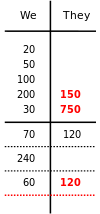 Total: The scores for each side are totalled and East-West (the 'They' on the score sheet) win the rubber.