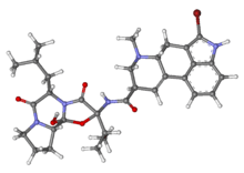 Bromocriptine is a semisynthetic derivative of a natural ergot alkaloid, ergocryptine (a derivative of lysergic acid), which is synthesized by bromination of ergocryptine using N-bromosuccinimide.[16][17]