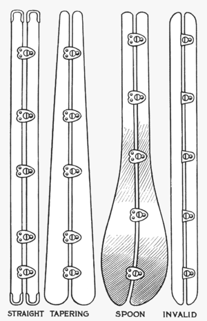 In the middle of the nineteenth century, a new form of busk appeared. It was made of two long pieces of steel, one with loops and the other with posts, that functioned in the same way as hook and eye fastenings on a garment . This made corsets considerably easier to put on and take off, as the laces did not have to be loosened as much as when the corset had to go over the wearer's head and shoulders. The second half of the nineteenth century also saw the invention of the spoon busk.