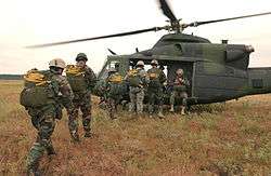 The CH-146 is the Canadian military designation for the Bell 412CF, a modified Bell 412, ordered by Canada in 1992.[3] The CH-146 was built at Mirabel, Quebec, at the Bell Canadian plant. They were delivered between 1995 and 1997 in one of two configurations, the Combat Support Squadron (CSS) version for search and rescue missions, and the Utility Tactical Transport Helicopter (UTTH), which carries a crew of three and an eight-man section.[1]