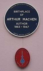 Caerleon also has associations with later Arthurian literature as the birthplace of the writer Arthur Machen who often used it as a location in his work. The Hanbury Arms was visited by Tennyson who lodged there while he wrote his Morte d'Arthur (later incorporated into his Idylls of the King).[16] Today Caerleon has a modern statue of a knight, "The Hanbury Knight", in reflecting stainless steel by Belgian sculptor Thierry Lauwers.[17] In Michael Morpurgo's novel Arthur, High King of Britain, Caerleon is the castle where Arthur unknowingly commits incest with his half-sister Morgaine, resulting in the conception of his son Mordred who will later bring about his downfall. Mary Stewart's account of the Arthurian legends also mentions Caerleon as a place where Arthur held court. In that telling, the incest took place at Luguvalium. [18]