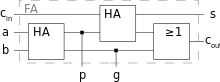 The critical path of a carry-skip-adder begins at the first full-adder, passes through all adders and ends at the sum-bit . Carry-skip-adders are chained (see block-carry-skip-adders) to reduce the overall critical path, since a single -bit carry-skip-adder has no real speed benefit compared to a -bit carry-ripple-adder.