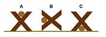 Cavaletti (also spelled cavalletti, singular (rarely used in English) cavaletto[1]) (Italian: "little horse"[1]) are small jumps, originally made of wood, used for basic horse training. Most consist of rails that are about 4 inches (10 cm) wide, and 10 feet (3.0 m) long.[1] The rails are inserted into fixed standards, usually made in an "X" shape, that commonly are designed to be placed at one of three preset heights ranging from a few inches off the ground to a maximum of about 18 to 24 inches (46 to 61 cm). However, in informal terminology, even ground rails without standards are sometimes called "cavaletti." Modern designs can be made from various types of molded plastic and PVC pipe as well as wood. They can be used both for ground training with the handler working a horse on a longe line or at liberty, or while a rider is mounted on the horse. Cavaletti are used by practitioners of both English riding and western riding. Similar obstacles of lighter weight materials are used with dogs in dog agility and canine physical therapy.