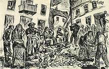 Chaim Goldberg (March 20, 1917 – June 26, 2004) was a Polish-Jewish artist, painter, sculptor, and engraver. He is known for being a chronicler of Jewish life in the small Polish village (or Shtetl) where he was born, Kazimierz Dolny in eastern Poland; and as a painter of Holocaust era art, which to the artist was seen as an obligation and art with a sense of profound mission.[1]