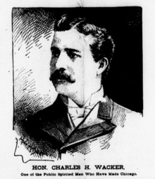Charles Henry Wacker (29 August 1856 – 31 October 1929), born in Chicago, Illinois, was a second generation German American who was a businessman and philanthropist. His father was Frederick Wacker, a brewer, who was born in Württemberg Germany.[1] He was Vice Chairman of the General Committee of the Commercial Club of Chicago, and in 1909 was appointed Chairman of the Chicago Plan Commission by Mayor Busse. As Commission chairman from 1909 to 1926, he championed the Burnham Plan for improving Chicago. This work included addresses, obtaining wide publicity from newspapers, and publishing Wacker's Manual of the Plan of Chicago (by Walter D. Moody) as a textbook for local schoolchildren.
