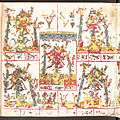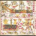 Sections parallel to this are contained in the first eight pages of the Codex Cospi and the Codex Vaticanus B. However, while the Codex Borgia is read from right to left, these codices are read from left to right. Additionally, the Codex Cospi includes the Lords of the Night alongside the day signs.