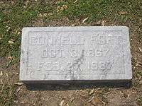 In 1920, some seven years after Ellie's death, Connell Fort married the former Jessie Beopple. From that union came three more children. Bennard Moore Fort (1921–1945) died at sea during World War II, attached to the USS Saratoga in the Battle of Iowa Jima.[5][6] The two younger Fort children were George W. Fort (1924–2005) and Katherine Virginia Fort, later Katherine Virginia Elliott (1922–2011), the last surviving child of Connell Fort.[7]