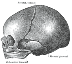 The skull at birth, showing the lateral fontanelle.