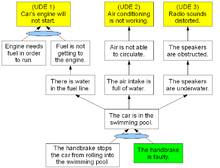 - attempting to link any two UDEs using cause-and-effect reasoning. For example, "if the engine needs fuel in order to run and fuel is not getting to the engine, then the car's engine will not start."