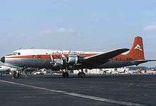 Operations grew when the larger Douglas DC-3 and DC-6 joined the fleet over the following years, allowing DAT to operate charter flights on behalf of KLM (which owned a 33.3 percent stake in DAT), Sabena, Crossair and BIAS. In 1973, the majority of the airline's stake was bought by Compagnie Maritime Belge.[3] During 1974, a Boeing 720 was leased, allowing DAT to offer worldwide charter flights (under the Delta International branding),[4] which soon turned out to be unsuccessful, though.[5]