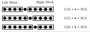 After a warmup cycle, the method splits the system into two blocks, which need not have equal sizes, and two sites in between. A set of representative states has been chosen for the block during the warmup. This set of left block + two sites + right block is known as the superblock. Now a candidate for the ground state of the superblock, which is a reduced version of the full system, may be found. It may have a rather poor accuracy, but the method is iterative and improves with the steps below.