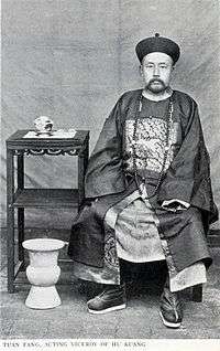 Duanfang (Chinese: 端方; pinyin: Duānfāng; Wade–Giles: Tuan-fang; 20 April 1861 – 27 November 1911), courtesy name Wuqiao (simplified Chinese: 午桥; traditional Chinese: 午橋; pinyin: Wǔqiáo), was a Manchu politician, educator and collector who lived in the late Qing dynasty. He was a member of the Tohoro (託濶羅) clan and the Plain White Banner of the Eight Banners.