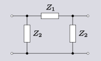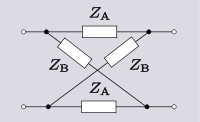 A 3-terminal network can also be used as a 2-port. To achieve this, one of the terminals is connected in common to one terminal of both ports. In other words, one terminal has been split into two terminals and the network has effectively been converted to a 4-terminal network. This topology is known as unbalanced topology and is opposed to balanced topology. Balanced topology requires, referring to Figure 3, that the impedance measured between terminals 1 and 3 is equal to the impedance measured between 2 and 4. This is the pairs of terminals not forming ports: the case where the pairs of terminals forming ports have equal impedance is referred to as symmetrical. Strictly speaking, any network that does not meet the balance condition is unbalanced, but the term is most often referring to the 3-terminal topology described above and in Figure 3. Transforming an unbalanced 2-port network into a balanced network is usually quite straightforward: all series connected elements are divided in half with one half being relocated in what was the common branch. Transforming from balanced to unbalanced topology will often be possible with the reverse transformation but there are certain cases of certain topologies which cannot be transformed in this way. For example, see the discussion of lattice transforms below.