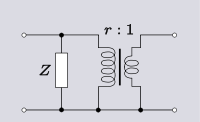An elementary transformation that can be done with ideal transformers and some other impedance element is to shift the impedance to the other side of the transformer. In all the following transforms, r is the turns ratio of the transformer.