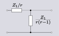 A single impedance has two terminals to connect to the outside world, hence can be described as a 2-terminal, or a one-port, network. Despite the simple description, there is no limit to the number of meshes,[note 6] and hence complexity and number of elements, that the impedance network may have. 2-element-kind[note 4] networks are common in circuit design; filters, for instance, are often LC-kind networks and printed circuit designers favour RC-kind networks because inductors are less easy to manufacture. Transformations are simpler and easier to find than for 3-element-kind networks. One-element-kind networks can be thought of as a special case of two-element-kind. It is possible to use the transformations in this section on a certain few 3-element-kind networks by substituting a network of elements for element Zn. However, this is limited to a maximum of two impedances being substituted; the remainder will not be a free choice. All the transformation equations given in this section are due to Otto Zobel.[4]
