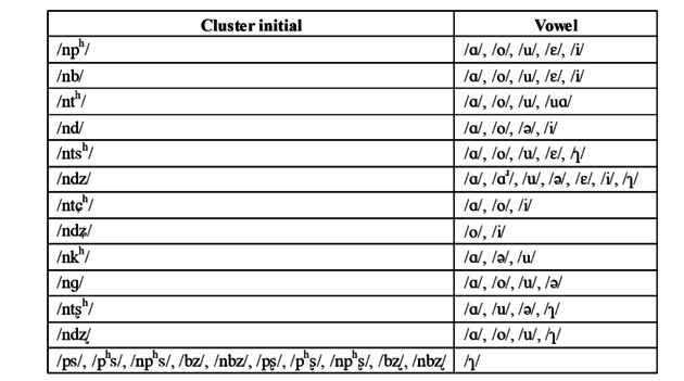 There is also some restrictions on what vowels the cluster initials can precede and are generally more limited than the number of vowels that the simple consonants can precede.