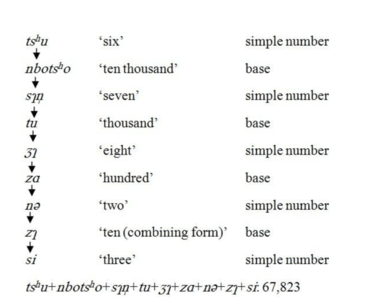Process of creating a large complex number in Ersu
