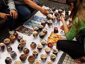 Although traditionally made from a hollowed calabash gourd, these days mate gourds are produced from a variety of materials including wood, glass, ceramic and more recently silicone.[9]