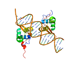 Forkhead box protein M1 is a protein that in humans is encoded by the FOXM1 gene.[3][4] The protein encoded by this gene is a member of the FOX family of transcription factors.[3][5] FOXM1 has been awarded the Molecule of the Year 2010 for its growing potential as a target for cancer diagnosis and therapies.[6]