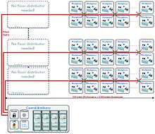 In FTTO designs there is no need for floor distributors, and no investment in cooling, power supply and security equipment (i.e. access control, fire protection, sensors, UPS) for the floor distribution room is required. Floor distribution rooms hosting technical equipments (usually measuring 6–18 m2 each) are not required and the room saved can be used alternatively.[2] Another advantage of FTTO infrastructures is their flexibility. New users, services or applications can be easily accommodated into the network. Moreover, network adjustments, upgrades and physical changes are seamlessly integrated into the existing network without operation stops. Research shows that using EEE-enabled switches can save up to 60% installation time compared to traditional non-EEE network designs.[2] On top of that, most advanced FTTO infrastructures help to save up to 40% TCO.[8]