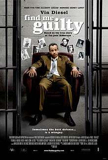 Find Me Guilty is a 2006 American courtroom comedy-drama crime film co-written and directed by Sidney Lumet, based on the true story of the longest Mafia trial in American history. The film stars Vin Diesel as mobster Giacomo "Jackie" DiNorscio, who faces a series of charges even though he has a prior 30-year conviction, but he decides to stand trial instead of ratting out his family and associates. A wrench is thrown into the system when DiNorscio attempts to defend himself and act as his own lawyer at trial.