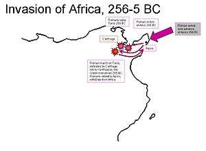 After their conquests in the Agrigentum campaign, and following several naval battles, Rome attempted (256/255 BC) the second large scale land operation of the war. Seeking a swifter end to the war than the long sieges in Sicily would have provided, Rome decided to invade the Carthaginian colonies of Africa and usurp Carthage's supremacy in the Mediterranean Sea, consequently forcing Carthage to accept its terms.[35][47]