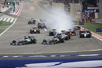 Lewis Hamilton takes the lead at the start of the 2014 Bahrain Grand Prix | |