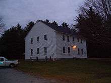 Foster is home to the Foster Town House. Built in 1796 and in use to this day,[11] the Foster Town House is the oldest government meeting house of its type in the United States.[12] Foster also contains both of Rhode Island's only two covered bridges, known as the Swamp Meadow Covered Bridge (the other is located on Ponaganset High School's Cross Country Course). Built in 1994 by Jed Dixon, a Foster resident, it is a reproduction of an early-19th-century specimen. It is the only covered bridge in Rhode Island located on a public road.[13][14] Jerimoth Hill, the highest point of elevation in Rhode Island, is located in Foster.[15]