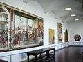The Nicholas Lochoff Cloister is a main feature of the Frick Fine Arts Building. Its large paintings of Italian masterpieces are scale reproductions that were commissioned in 1911 from Nicholas Lochoff by the Moscow Museum of Fine Arts (now the Pushkin Museum of Fine Arts). Lochoff worked slowly and carefully. Only a few paintings were completed and sent back to Russia by the Russian Revolution of 1917. Lochoff, unable to return because of new communist regime, felt compelled to sell off the paintings. Buyers included Harvard University and the Frick Art Reference Library in New York. Miss Frick acquired the entire collection, however, after Lochoff's death, with the help of art critic Bernard Berenson. In 2003, the paintings were cleaned and restored by Christine Daulton. Also in the gallery are noted Carrara marble reproductions of 14th century Annunciation figures by sculptor Alceo Dossena.[11]