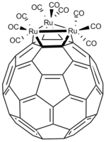 - ↑ Hsu, Hsiu-Fu; Shapley, John R. (1996). "Ru3(CO)9(μ3-η2,η2,η2-C60): A Cluster Face-Capping, Arene-Like Complex of C60". J. Am. Chem. Soc. 118 (38): 9192. doi:10.1021/ja962077m.