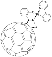 Fullerenes can also be substituents on otherwise conventional ligands as seen with an isoxazoline fullerene chelating to platinum, rhenium, and iridium compounds.[9]