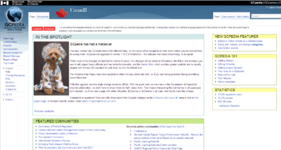 GCpedia is an internal wiki used by the Government of Canada, for collaboration and knowledge sharing. Its slogan is “People & Knowledge“. GCpedia is only accessible via the Government of Canada network and contributors must be on a computer on a government (.gc.ca) network to be able to access it. The user base is potentially 250,000 people, from over 150 departments and agencies. Users must be registered if they wish to add or modify content, so that all contributions are attributable.[1] GCpedia has been used as a platform to take, publish, and distribute meeting minutes, to create project status dashboards, to collaboratively author interdepartmental papers, to brainstorm, and to create wiki-based briefing books.