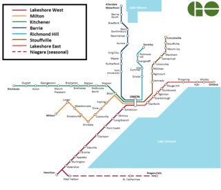 Lakeshore West (to Hamilton, with buses and seasonal weekend trains to Niagara Falls)