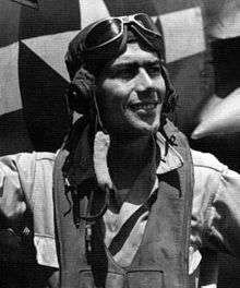 During the dogfight, Johnson chased an enemy aircraft off his wingman's tail and destroyed it. Johnson's aircraft was then attacked by the enemy. His heavy fire tore the wing off a Japanese fighter and sent it spiraling, in the process ripping off Johnson's port (left) tail boom assembly. Johnson managed to regain control of his aircraft and was escorted back to base by the remaining friendly planes. He scored three victories that day, but at the cost of his own aircraft.[1][3] Johnson was promoted to Captain in the 9th Fighter Squadron in August 1943.[1]