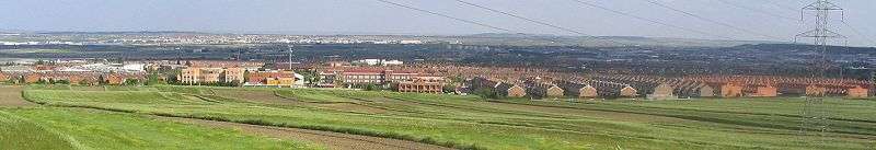 Getafe (Spanish pronunciation: [xeˈtafe]) is a city in the south of the Madrid metropolitan area, Spain, and one of the most populated and industrialised cities in the area. It is home to one of the oldest Spanish military air bases and the Universidad Carlos III de Madrid. Within the city is the Cerro de los Ángeles, or Hill of the Angels, a site considered the geographical center of the Iberian Peninsula.[1] Getafe is located 13 km south of Madrid's city centre, within a flat area of Spain's Meseta Central in the Manzanares River basin.