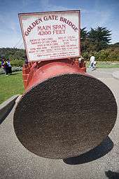 - ↑ "Golden Gate Bridge: Construction Data". Golden Gate Bridge, Highway and Transportation District. Retrieved August 20, 2007.